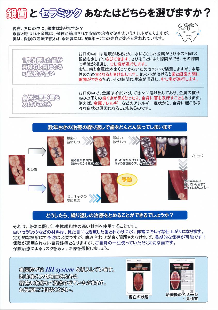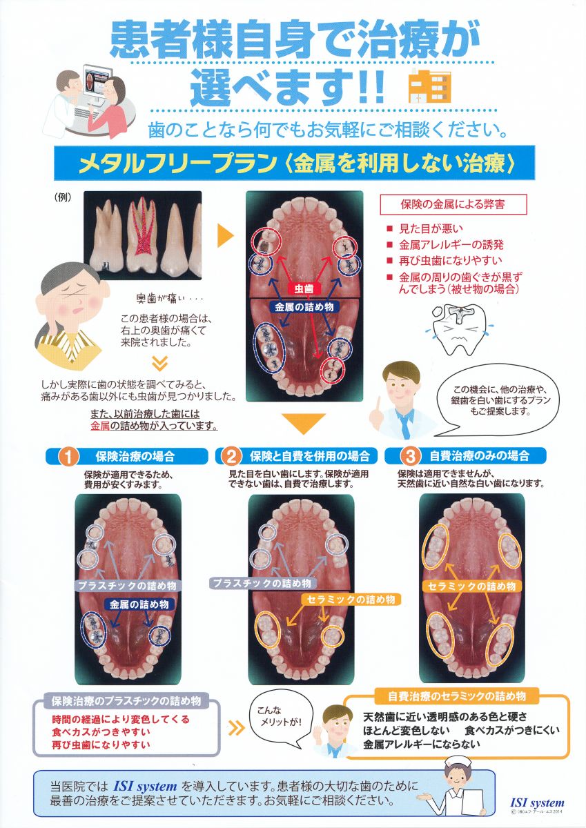 来院された患者様に自由に治療を選び、選択していただけるようにISIシステムの導入に伴い、無料で資料の配布、相談もおこなっています。