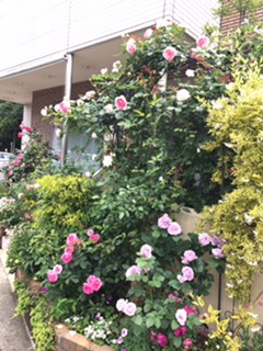 医院の花壇のバラたちがきれいに咲いています♡