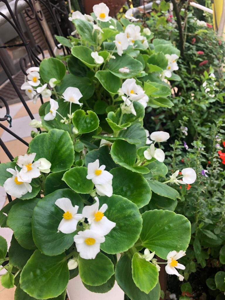 でも!夏の困ったときのベゴニア(↓)白い花が涼しげです。