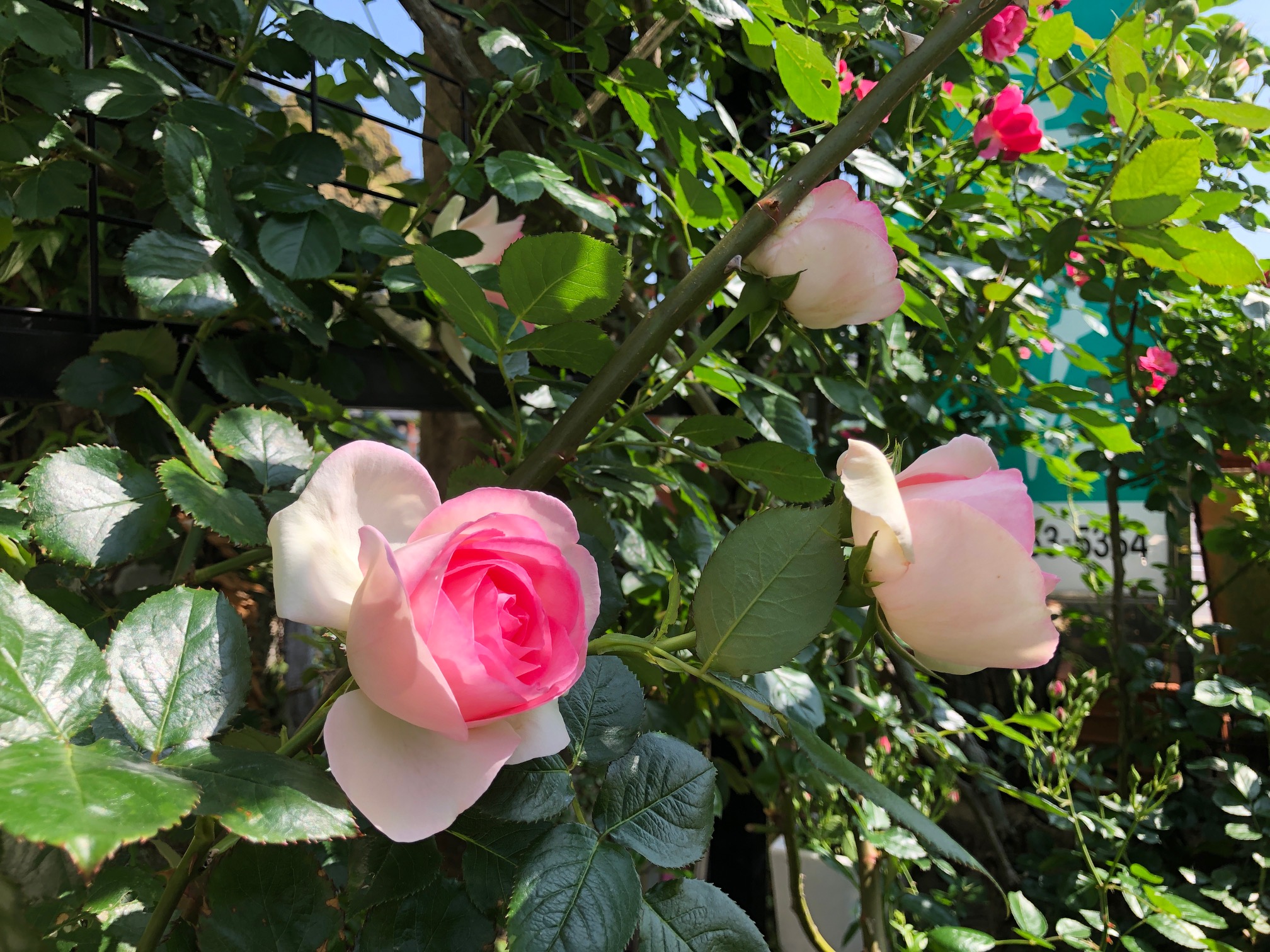 玄関先ではピエールドロンサールの薔薇が今年も沢山咲いて、凄く綺麗で見惚れてしまっております😊うっとりしております。