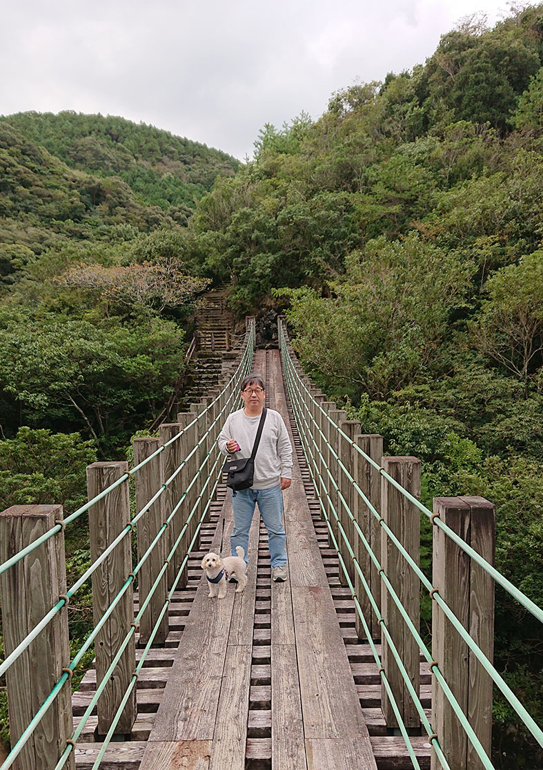 サイクリング用に周回5キロのコースでアップダウンもあり、1週歩くと結構な運動になりました。周りには吊り橋などもあり、色づき始めた紅葉と冷涼な風で秋を満喫しました。