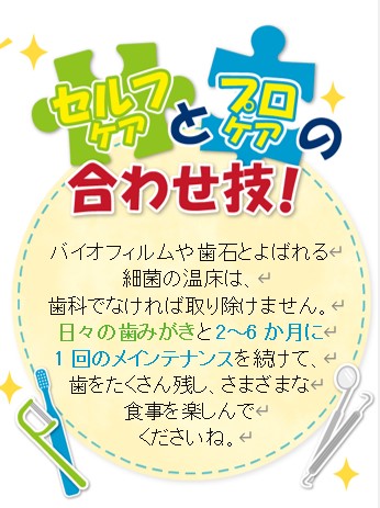 てらさき歯科医院でも皆さんのお口の健康を守るお手伝いをいたしますので定期的なメンテナンスには必ずご来院ください。