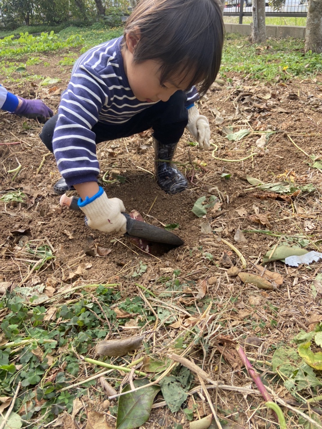 1歳半の下の子は、長靴が嫌だったようで、スコップを放り投げ(笑)、今回は見学に。来年は一緒に芋掘りを楽しめたらなーと思います。