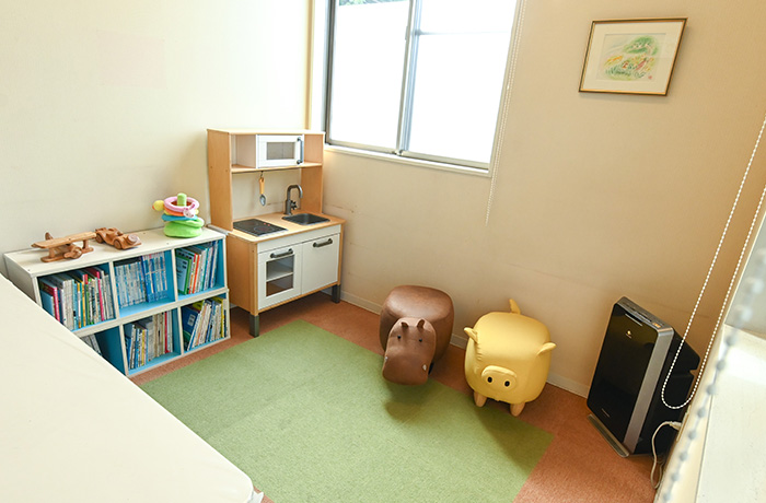 お子様連れのお母さまも安心してご来院頂けるよう、待合室にキッズスぺースを設けております。