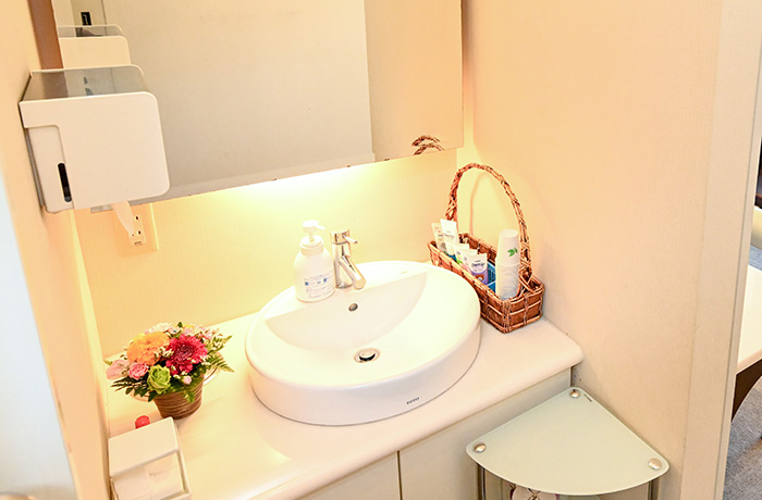 パウダールームには、歯磨き粉などのアメニティグッズをご準備しておりますので、ご自由にお使いください。